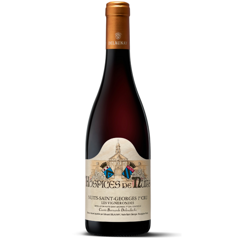 • VINFICATION AND AGINGThe grapes are handpicked with the greatest of care before being brought to the Hospices’ winery where they are destemmed and gravity-transferred to tanks. Vinification, under the supervision of Jean-Marc Moron, the Hospices de Nuits’ Cellar Master, is performed according to tradition. The wine is then transferred to new oak barrels and aged in the Hospices’ cellars until it is taken over by the House of Delaunay in March. Total ageing time amounts to approximately 15 months.
